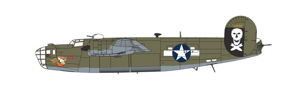 A legendás amerikai második világháborús négymotoros bombázó, a Consolidated B-24D Liberator műanyag modellkészlete.