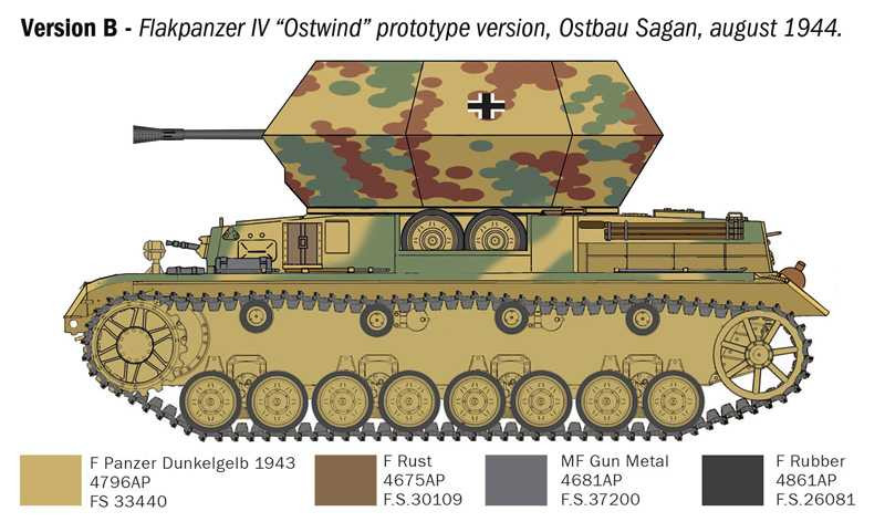 1944 végén a Wirbelwindhez csatlakozott a még erősebb Ostwind, amelyet egy 37 mm-es Flak 43 légvédelmi ágyúval szereltek fel. Az új légvédelmi fegyverzet nagyobb lőtávolságot biztosított, és egy erős, jellegzetes megjelenésű pajzs védte, amelyet egy hatszögletű, nyitott toronyra helyeztek.