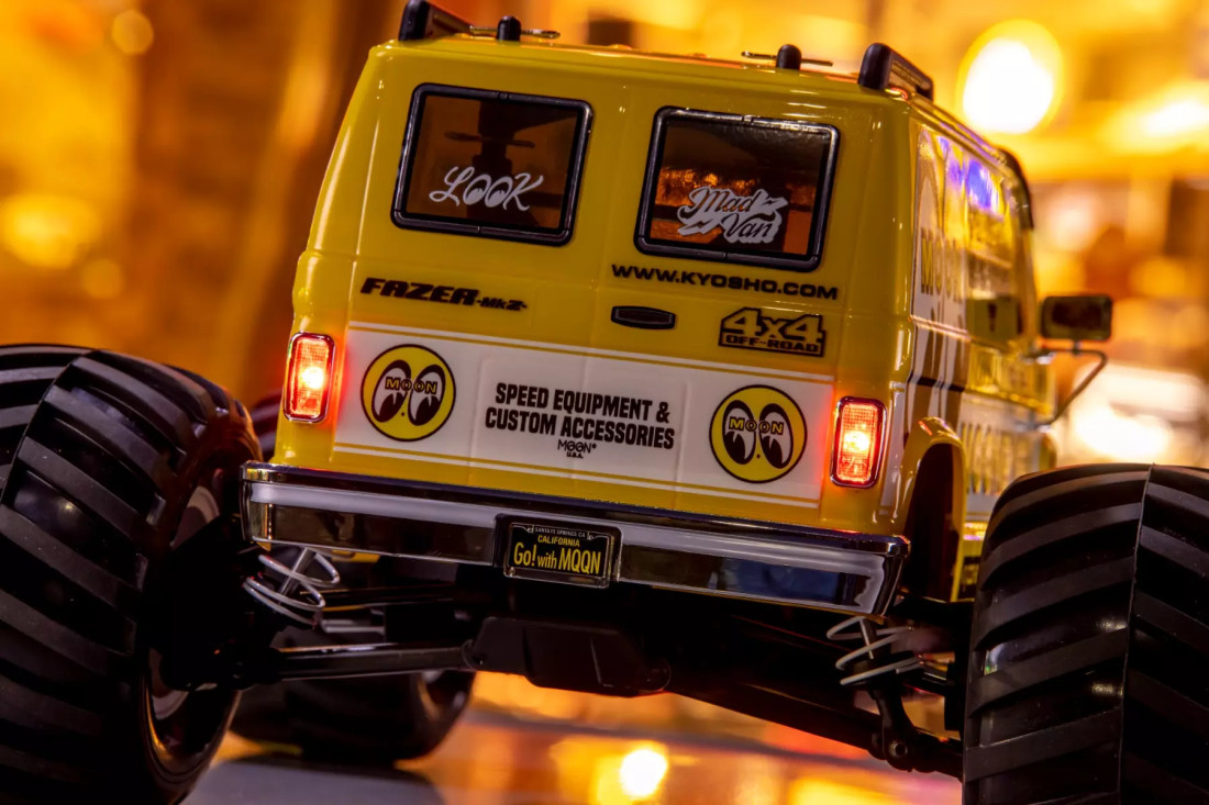 Kyosho Mad Van v exkluzivní edici MOONEYES přináší unikátní spojení retro amerického stylu a moderního výkonu na osvědčeném podvozku Fazer Mk2 (FZ02L-BT). Tato verze „Ultra Scale“ vyniká ikonickou žluto-černou grafikou a propracovanou karoserií s maketovými detaily, jako jsou vstřikované plastové díly, boční výfuky a stylový design MOONEYES. Podvozek je navržen s důrazem na jednoduchost, odolnost a snadnou údržbu, což z něj činí ideální volbu pro začátečníky i pokročilé modeláře, kteří hledají stylový stroj pro radost z jízdy na různém povrchu – od parkovišť až po prašné cesty.