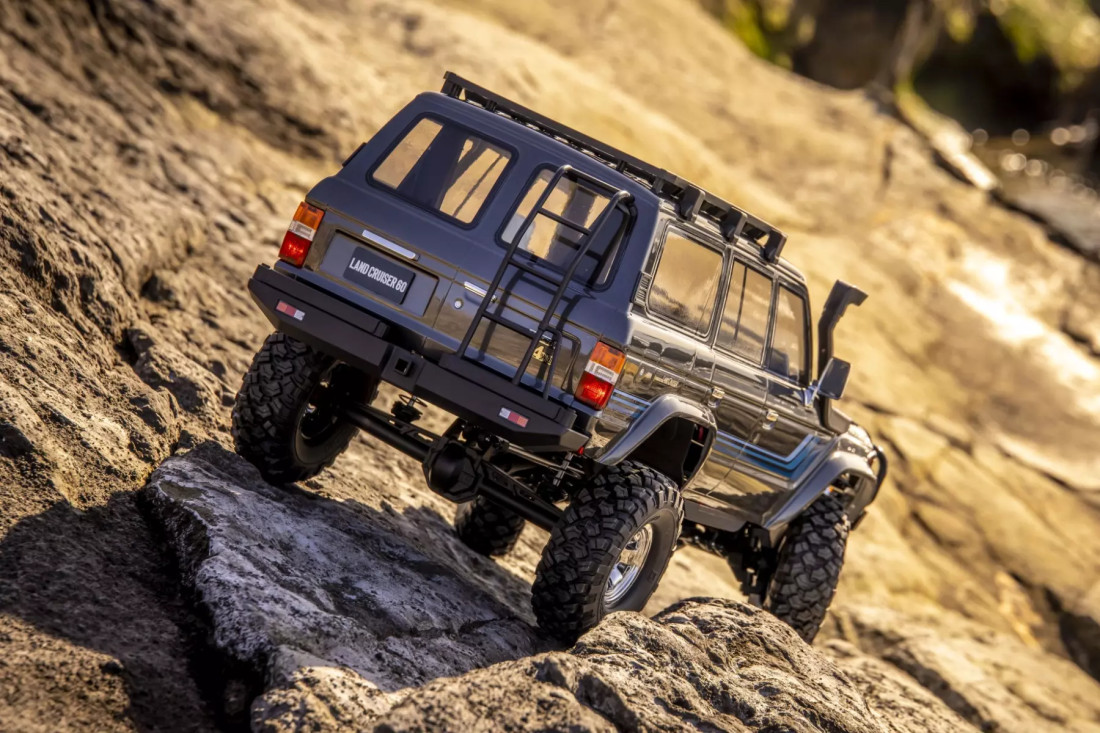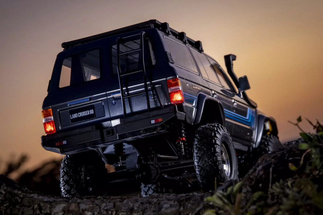- rendkívül részletesen kidolgozott, engedéllyel rendelkező Toyota Land Cruiser 60 polikarbonát karosszéria;