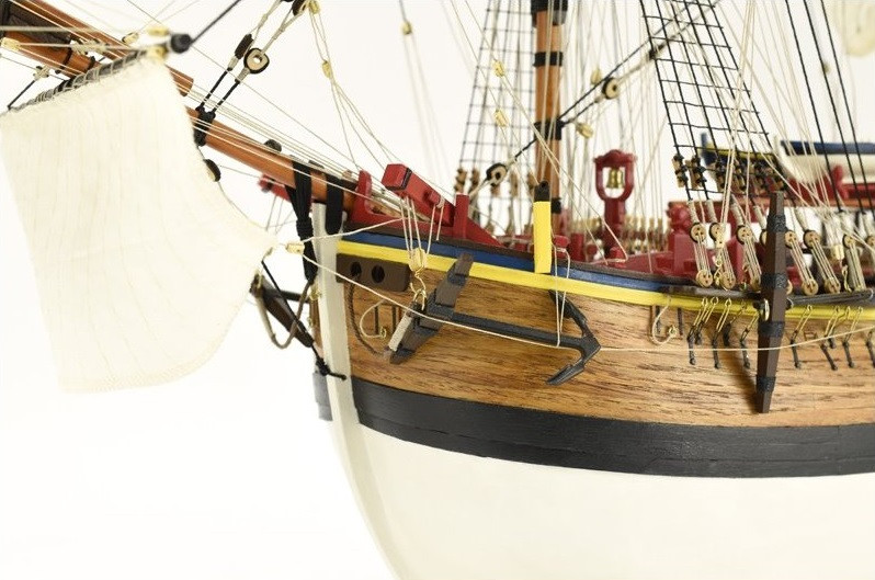 A modell álgerinccel és bordákkal készült, hasonlóan a valódi hajókhoz. A hajótestet a klasszikus héjgyalulási technológiával építették, ebben az esetben részben két rétegben. A készlet tartalmaz precíz, lézerrel vágott, fából és rétegelt lemezből készült alkatrészeket, furnércsíkokat a hajótest palánkozásához, sárgaréz kiegészítőket (pl. ágyúcsövek, szerelvények stb.), néhány öntött fém alkatrészt, autentikus textúrájú varrott vitorlákat, cérnákat, szögeket és minden egyéb építőanyagot.