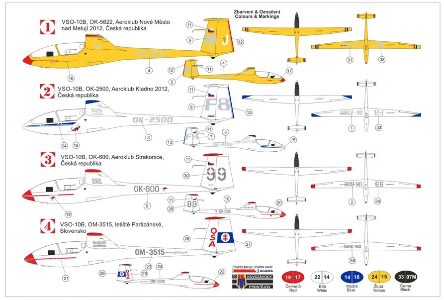 A Kovozávody Prostějov cég által gyártott, vegyes felépítésű csehszlovák együléses vitorlázó repülőgép műanyag készlete.