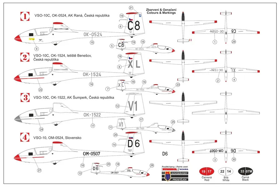 A Kovozávody Prostějov cég által gyártott, vegyes felépítésű csehszlovák együléses vitorlázó repülőgép műanyag készlete.