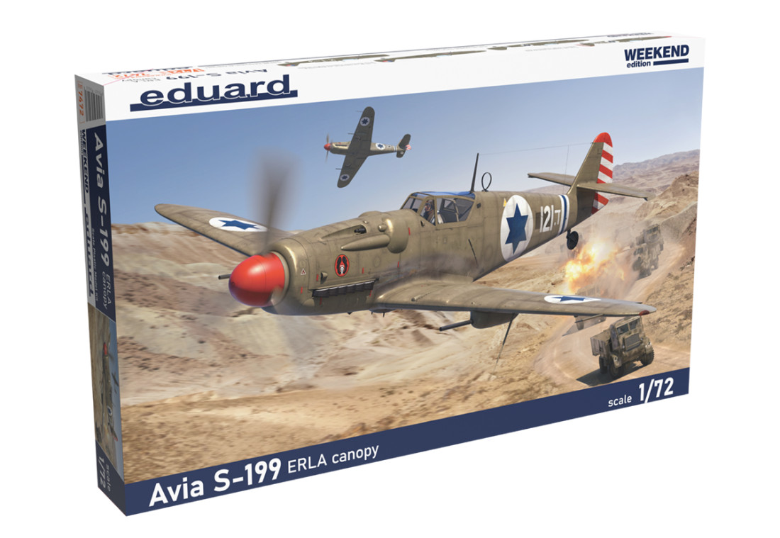 Küldj egy érdeklődéstA csehszlovák Avia S-199 vadászrepülőgép műanyag készlete, HÉTVÉGI kiadás, 1:72 méretarány.