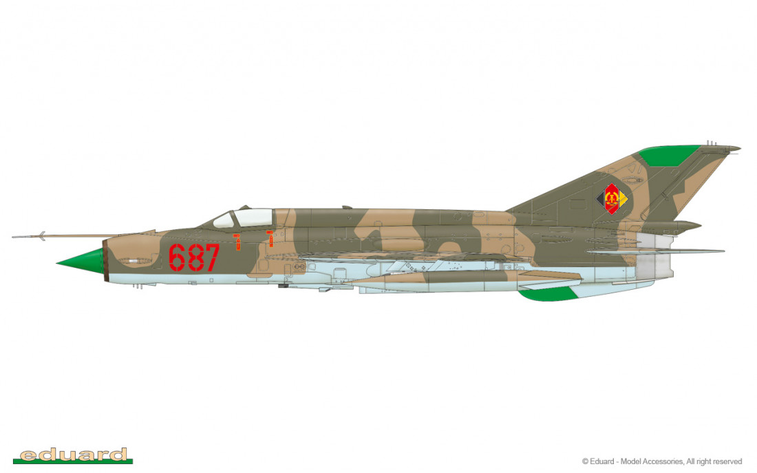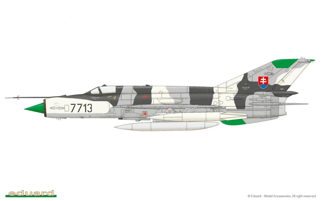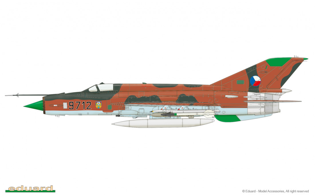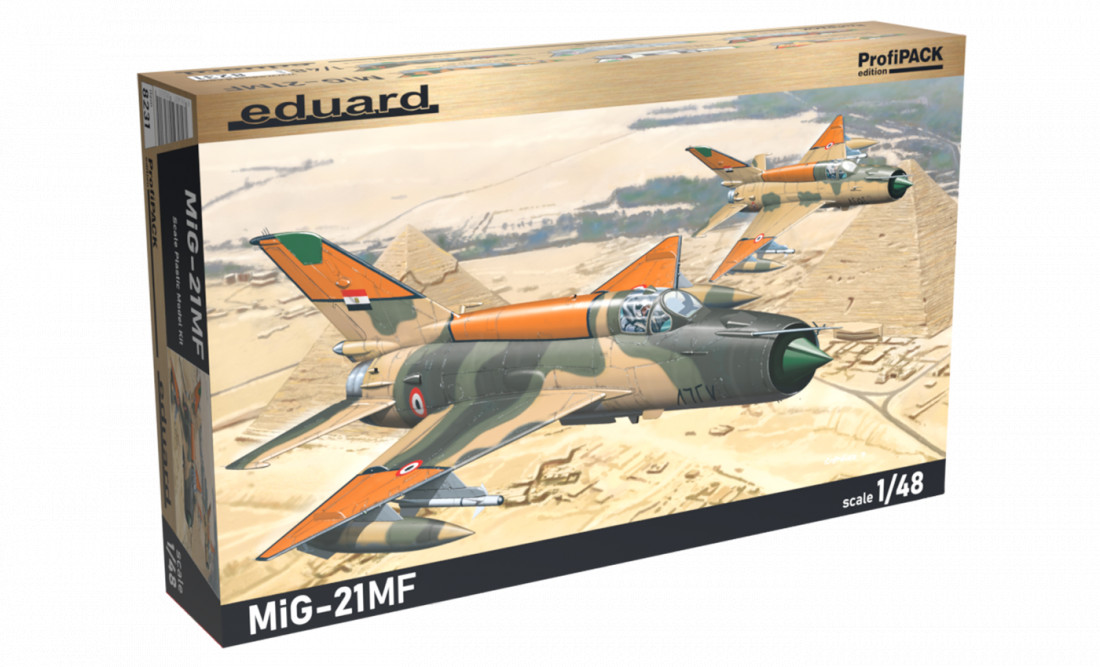 Plastiková stavebnice sovětského stíhacího proudového letounu MiG-21MF, edice ProfiPACK v měřítku 1:48.