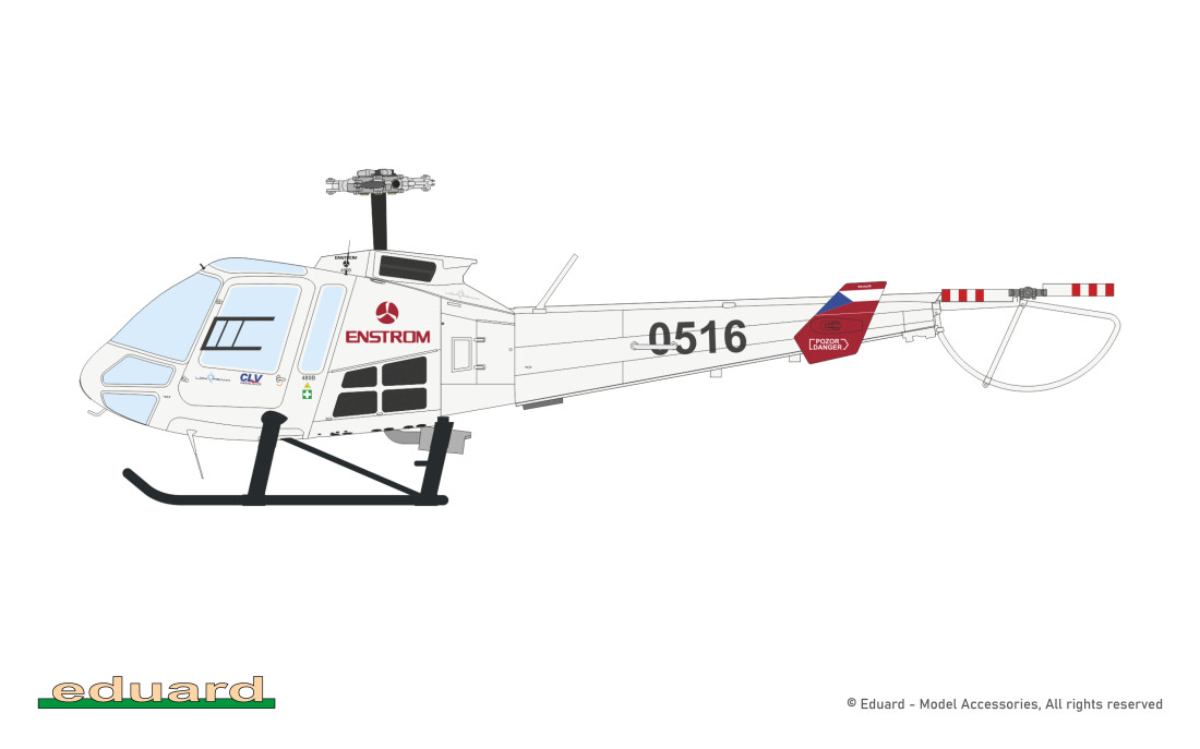 Az amerikai Enstrom 480 könnyű helikopter hibrid változatának műanyag készlete, 1:72 méretarányban.