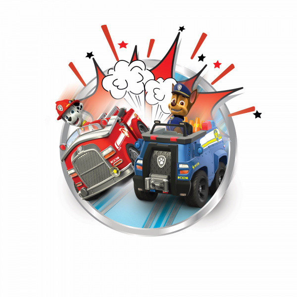 Autodráha Carrera 1. First dlouhá 2,9 m s auty Tlapková patrola Chase a Marshall. Autodráha, která je vhodná pro děti od 3 let, obsahuje rovinky, zatáčky, bránu pro větší zábavu při jízdě, ovladače a dekorace s tématikou Tlapková patrola. Autodráha se napájí prostřednictvím 4 malých monočlánků typu C.