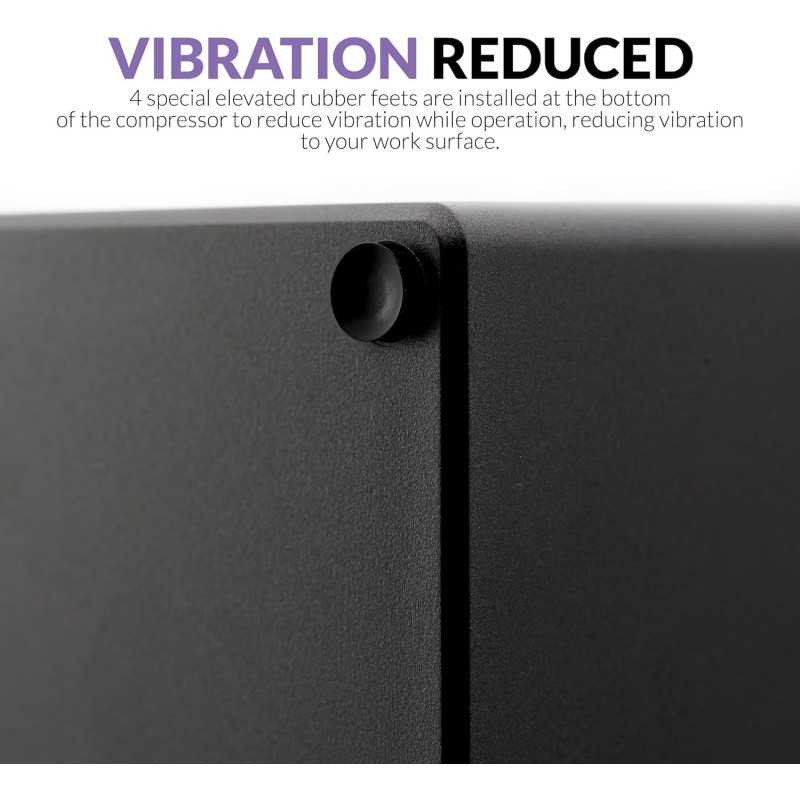 Míru hluku dále snižují pryžové nožičky, které nejenže tlumí vibrace, ale zajišťují i lepší stabilitu. Tato sada s lehkým, tichým a výkonným minikompresorem Gaahleri Ambition Series GTS-06 Serenair nabízí výborný poměr ceny a výkonu, což z ní činí vynikající volbu pro ty, kteří hledají kvalitní, výkonné, ale cenově dostupné řešení pro airbrush.