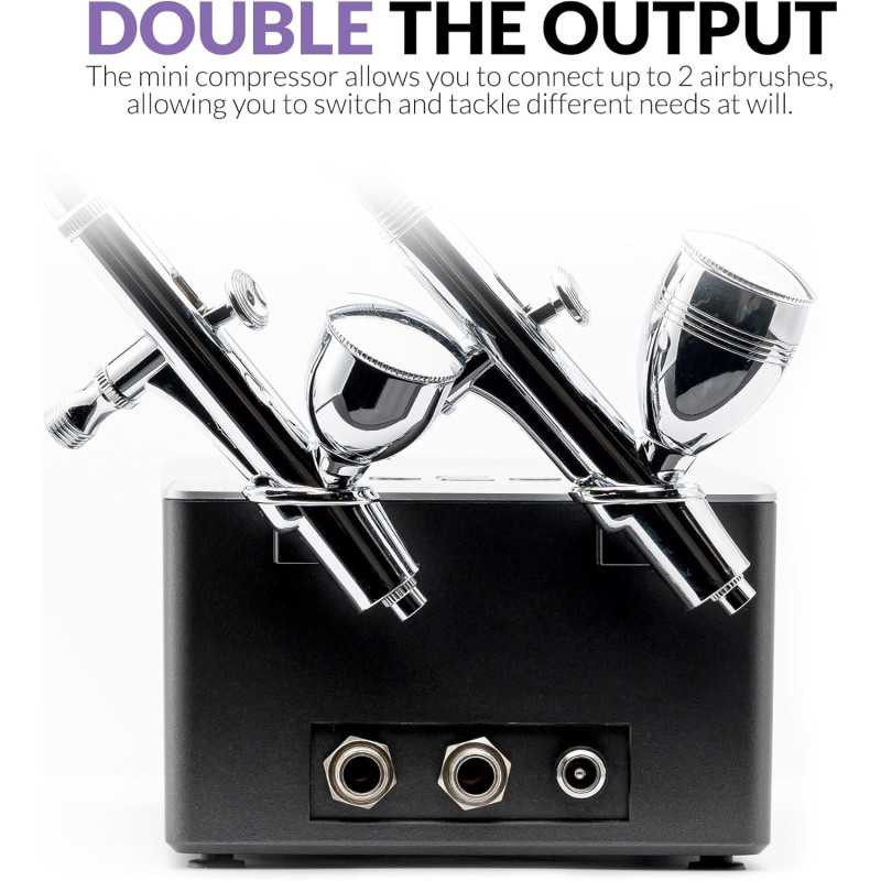 Díky elegantnímu a přenosnému designu je ideální pro začátečníky, kteří objevují svět airbrushingu, nebo pro zkušené airbrushery, kteří potřebují mít mobilní sestavu s konzistentním výkonem kdekoliv.