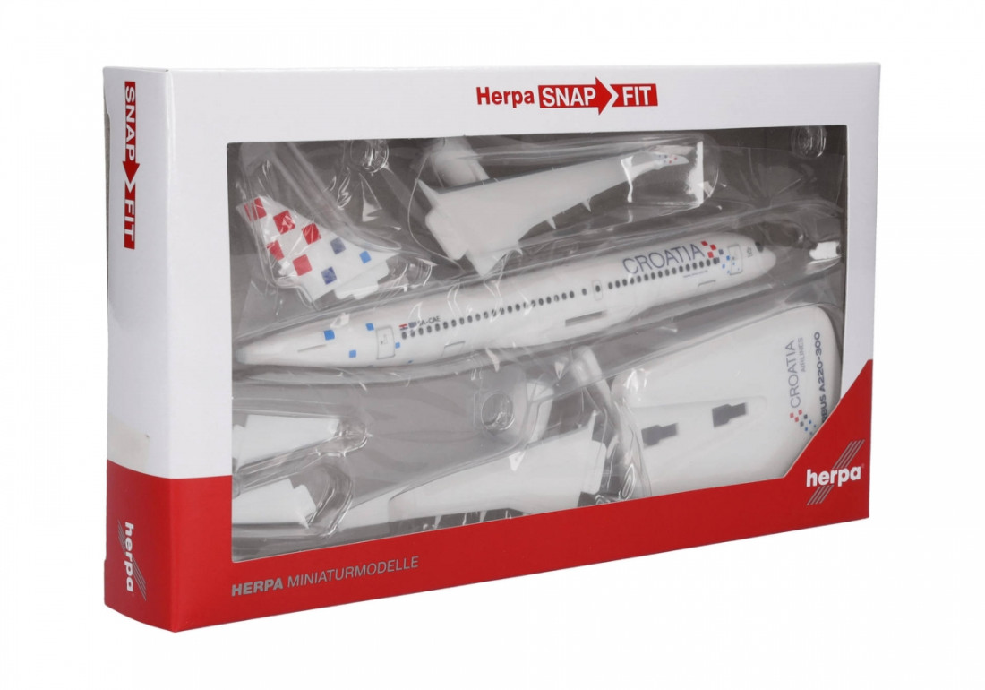 Herpa - 1:200 Airbus A220-300 (BD-500-1A11) Croatia Airlines, Named ″Zagreb″ (Snap-Fit) - HER614566