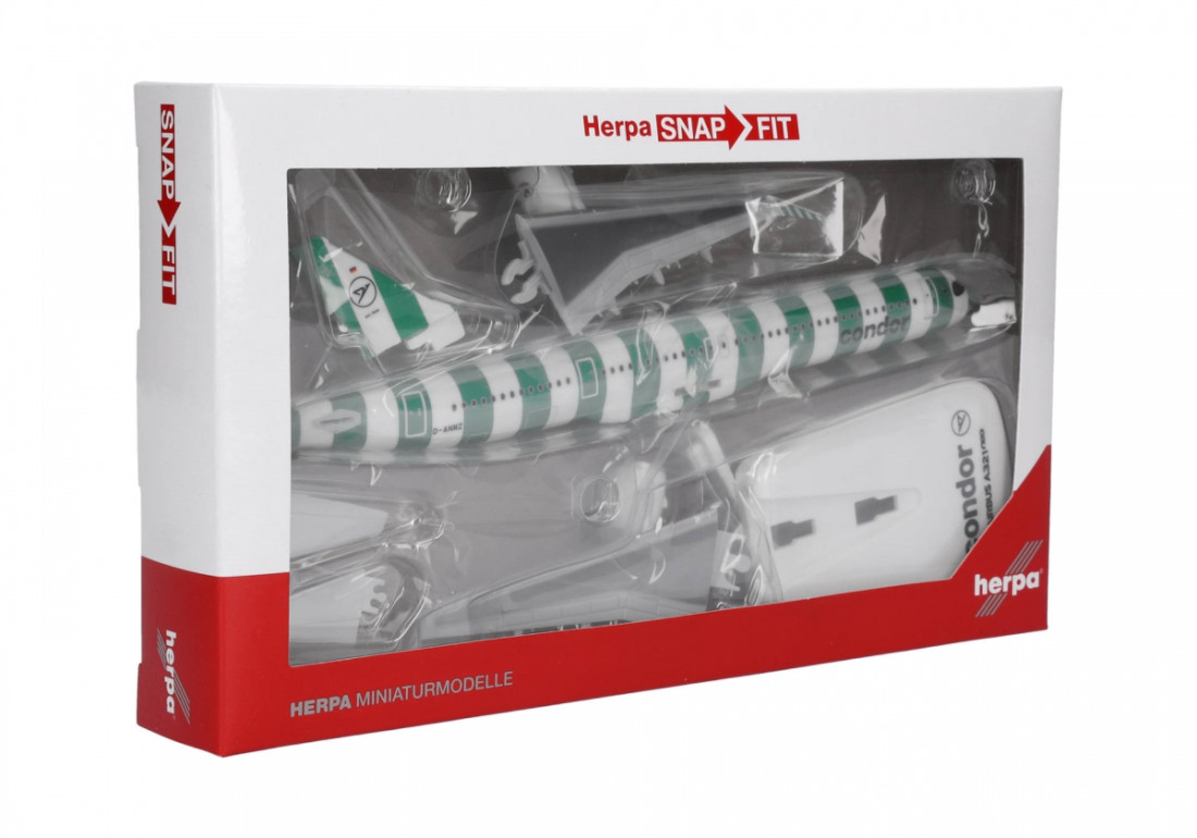 A Herpa Snap-Fit felpattintható modelljeit eredetileg közvetlenül a repülőgépek fedélzetén történő értékesítésre tervezték. Megfizethető áron vonzó kidolgozást és nagyon jó kidolgozási színvonalat kínálnak. A Snap-Fit sorozat modelljei 1:250 és 1:100 közötti méretarányban kaphatók. A csomag tartalmaz egy elegáns állványt a modell kiállításához. A modell időtakarékos összeszerelése egyetlen csepp ragasztót sem igényel.