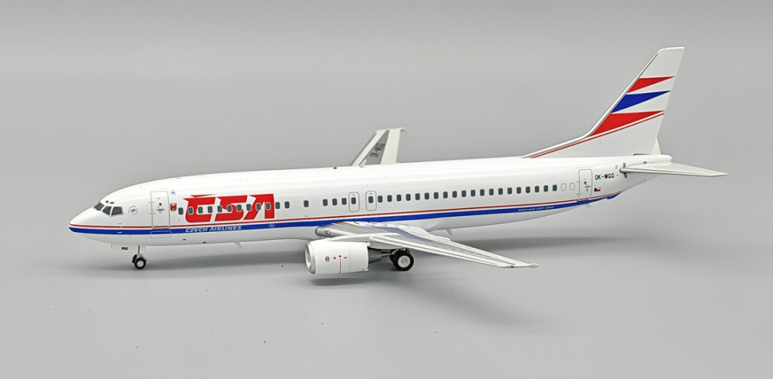 A Cseh Légitársaság Boeing B737-4Y0 repülőgépének fémből készült gyűjtői modellje, 1:200 méretarányban, kiváló minőségben készült. A modell már elkészült, nem kell összeszerelni vagy festeni. A csomag tartalmaz egy cserélhető futóművet és egy állványt.
