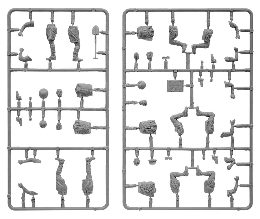 • a készlet műanyag öntőformákat tartalmaz 5 részletes brit dzsipfigurának megépítéséhez;
