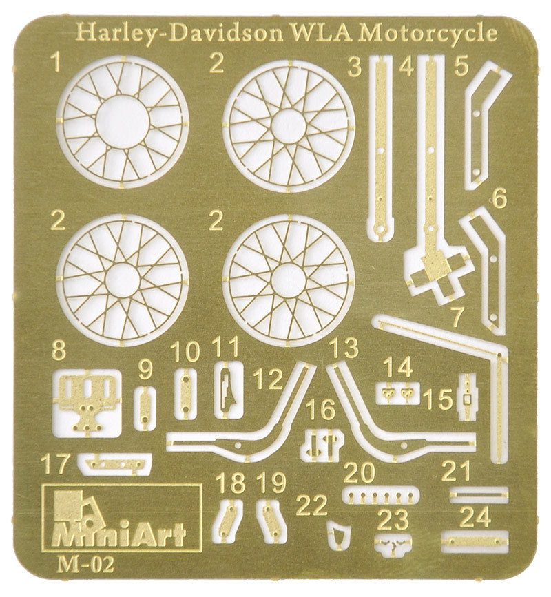 • a készlet tartalmaz egy Harley-Davidson WLA motorkerékpár építéséhez szükséges műanyag öntőformákat és 2 részletes figurát;
